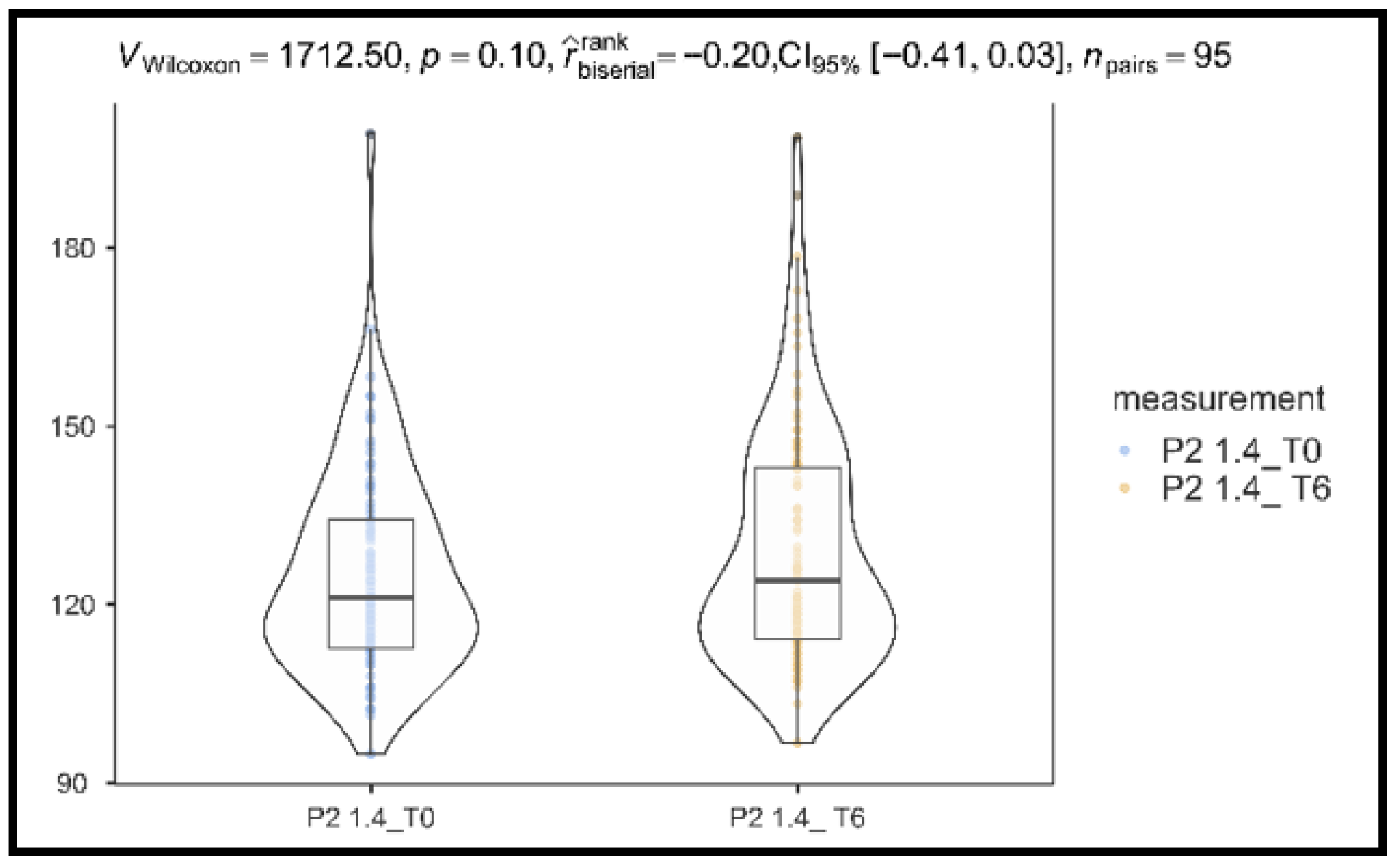 | P2 1.4 Hz T6 Mean ± SD Median (Interquartile Range) Shapiro–Wilk p | 130 ± 20.1 125 (28.7) <0.001 | 128 ± 19.9 121 (26.3) 0.007 | 0.617 |