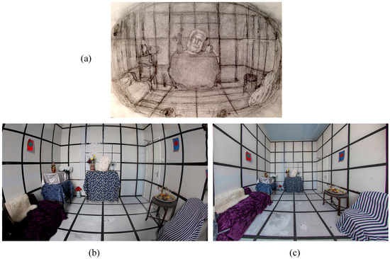- Ruta, N.; Burleigh, A.; Vigars, R.; Barratt, E.; Pepperell, R. Evaluating an artistic method for depicting human visual space. In Proceedings of the Applied Vision Association meeting, London, UK, 19 December 2016. [Google Scholar]