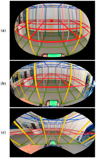 - Sharpless, T.K.; Postle, B.; German, D.M. Pannini:anewprojection for rendering wide angle perspective images. In Proceedings of the Sixth international conference on Computational Aesthetics in Graphics, Visualization and Imaging, London, UK, 14–15 June 2010, London, UK, 14–15 June 2010; Eurographics Association: Aire-la-Ville, Switzerland, 2010; pp. 9–16. [Google Scholar]