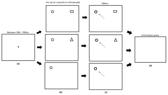 - Walker, R.; Kentridge, R.W.; Findlay, J.M. Independent contributions of the orienting of attention, fixation offset and bilateral stimulation on human saccadic latencies. Exp. Brain Res. 1995, 103, 294–310. [Google Scholar] [CrossRef]