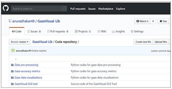 The GazeVisual-lib is hosted on GitHub and can be found in the following web-address: github.com/anuradhakar49/GazeVisual-Lib. It is released under the GNU-GPL v3.0 license, which allows the users to run, share, and modify the software and the source codes in the repository.