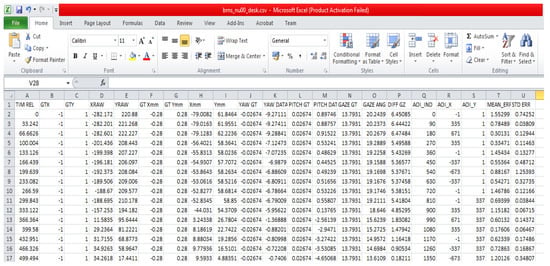 Appendix B.1. Gaze Data from Desktop Experiments