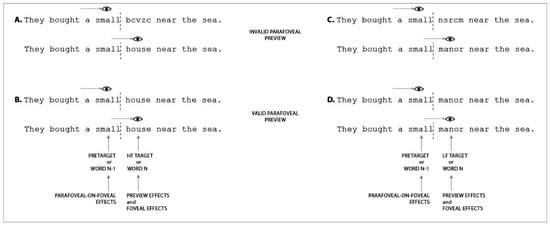 - Schotter, E.R.; Angele, B.; Rayner, K. Parafoveal processing in reading. Atten. Percept. Psychophys. 2012, 74, 5–35. [Google Scholar] [CrossRef]