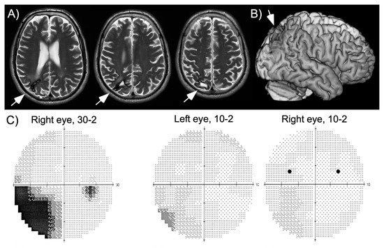 - Jacobs, L. Visual allesthesia. Neurology 1980, 30, 1059–1063. [Google Scholar] [CrossRef]