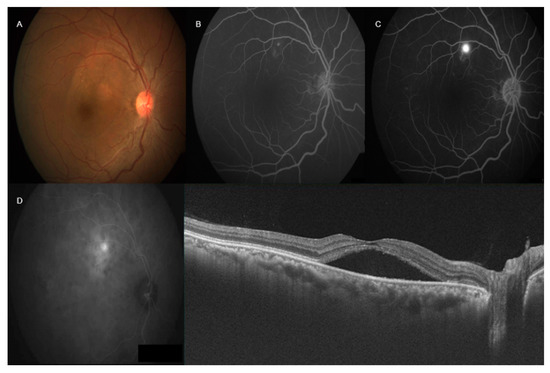 - Tittl, M.K.; Spaide, R.F.; Wong, D.; Pilotto, E.; Yannuzzi, L.A.; Fisher, Y.L.; Freund, B.; Guyer, D.R.; Slakter, J.S.; Sorenson, J.A. Systemic findings associated with central serous chorioretinopathy. Am. J. Ophthalmol. 1999, 128, 63–68. [Google Scholar] [CrossRef]