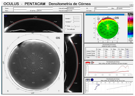 Pentacam Densitometry map for the left eye of a patient included in the study.