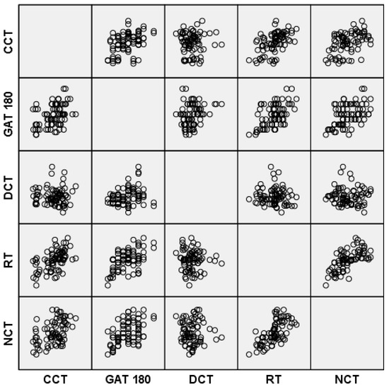 In our analyses, we find a moderate correlation with RT measurements and CCT, and a scatterplot distribution was dispersed, compromising Linear Regression analyses.