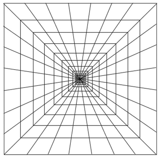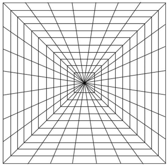 Schematic of experimental stimulus 3 (IP): INCOMPLETE (squares only) HUGHES-TYPE “PERSPECTIVE” GRID.