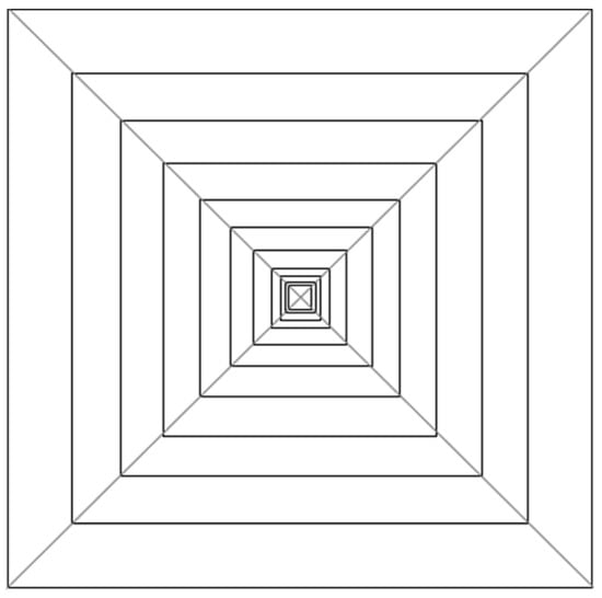 Deregowski and Parker [] explore the theory of Kazimierz Bartel (1882–1941), who, starting from a purely geometrical analysis of the perspectives present in artistic works of different ages and geographical locations, investigated it experimentally by asking observers to reproduce perspective geometric structures in different modalities, obtaining results that show how the human visual system is extremely lacking precision: the more the observer is involved in the representation of space, the further he moves away from realistic representation. It is as if, on a phenomenal level, we tend to “rotate” the shortened surfaces by making them approach the fronto-parallel plane. The same type of deformation can be found in the geometric structure underlying the reverspective.