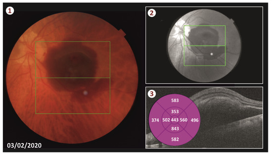 During visits, there was a small increase in the height of the PED by about 100 μm, which was overturned after ranibizumab administration, a fact that confirms the beneficial effect of the anti-VeGF injections in the SMH related to AMD. The achievement of our goal is reflected in the anatomical and functional outcome as the patient’s best corrected visual acuity reached (20/70) and the CMT fell to 267 μm according to his last visit (see Figure 3).
