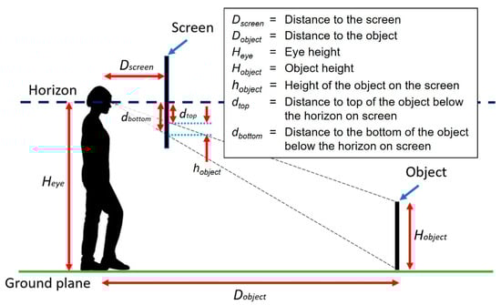 Dobject) from its size on screen in proportion to the true object size (