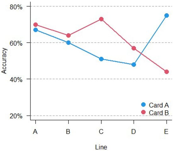 Accuracy comparison over card and lines.