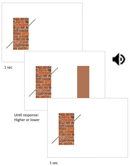 During each block, the Poggendorff stimulus on the left was always displayed. A trial began with a one-second delay (Figure 4). After this delay, an auditory beep was accompanied by the presentation of the comparison rectangle. The comparison rectangle was displayed until participants pressed a button on their keyboard to report whether it was wider or narrower than the central rectangle or the gap corresponding to the missing central rectangle in the Poggendorff stimulus on the left. The comparison rectangle disappeared after the button was pressed. A self-paced break was provided at the end of each block.