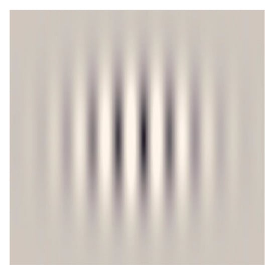 The Gabor patches were developed for different contrasts and calibrated in luminance according to a previous VR display characterization to ensure the correct contrast reproduction [25]. The characterization was performed experimentally using the CA-P427 Display Color Analyzer (Konica Minolta, Inc., Tokyo, Japan) and two 3DLUT tables, one for each eye/display [26]. The mean luminance of the pattern and background was configured at 50 cd/m2 according to our screen characterization. An example of this type of stimulus was represented in Figure 2. The maximum spatial frequency reproducible in a device is limited by the screen’s resolution and even more in the case of Gabor patches. Gabor patterns were created by modulating a sinusoidal grating with a Gaussian window, thus creating a soft transition between dark and soft patterns and consequently needing more pixels to create a cycle between patterns. The maximum spatial frequency theoretically reproducible in our screen was calculated to be 6 cycles per degree (cpd), but a stimulus of 3 cpd was finally defined to ensure the soft transition. Four possible orientations (0°, 45°, 90°, and 135°) were defined. The orientations were arbitrarily presented to observers, and changed over trials when a correct response was detected.