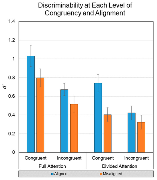 - Incongruent, Aligned trials should have lower discriminability than Incongruent, Misaligned trials.