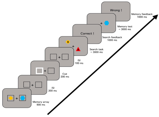 - Kim, S.-Y.; Kim, M.-S.; Chun, M.M. Concurrent working memory load can reduce distraction. Proc. Natl. Acad. Sci. USA 2005, 102, 16524–16529. [Google Scholar] [CrossRef] [PubMed]