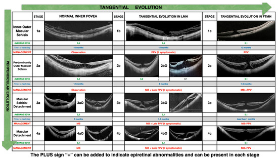 - Parolini, B.; Palmieri, M.; Finzi, A.; Frisina, R. Proposal for the management of myopic traction maculopathy based on the new MTM staging system. Eur. J. Ophthalmol. 2021, 31, 3265–3276. [Google Scholar] [CrossRef] [PubMed]