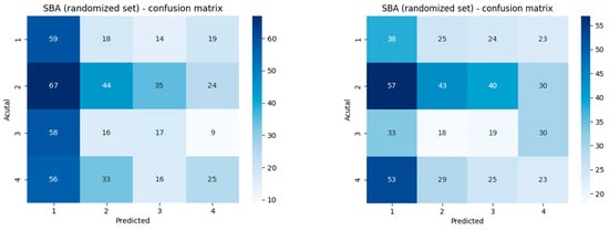 ChatGPT-3.5 Turbo (left) and ChatGPT-4.o (right) confusion matrixes for randomized SBA questions.
