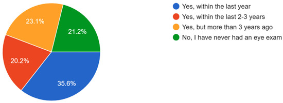 Participants who have had their eyes checked by a healthcare professional.