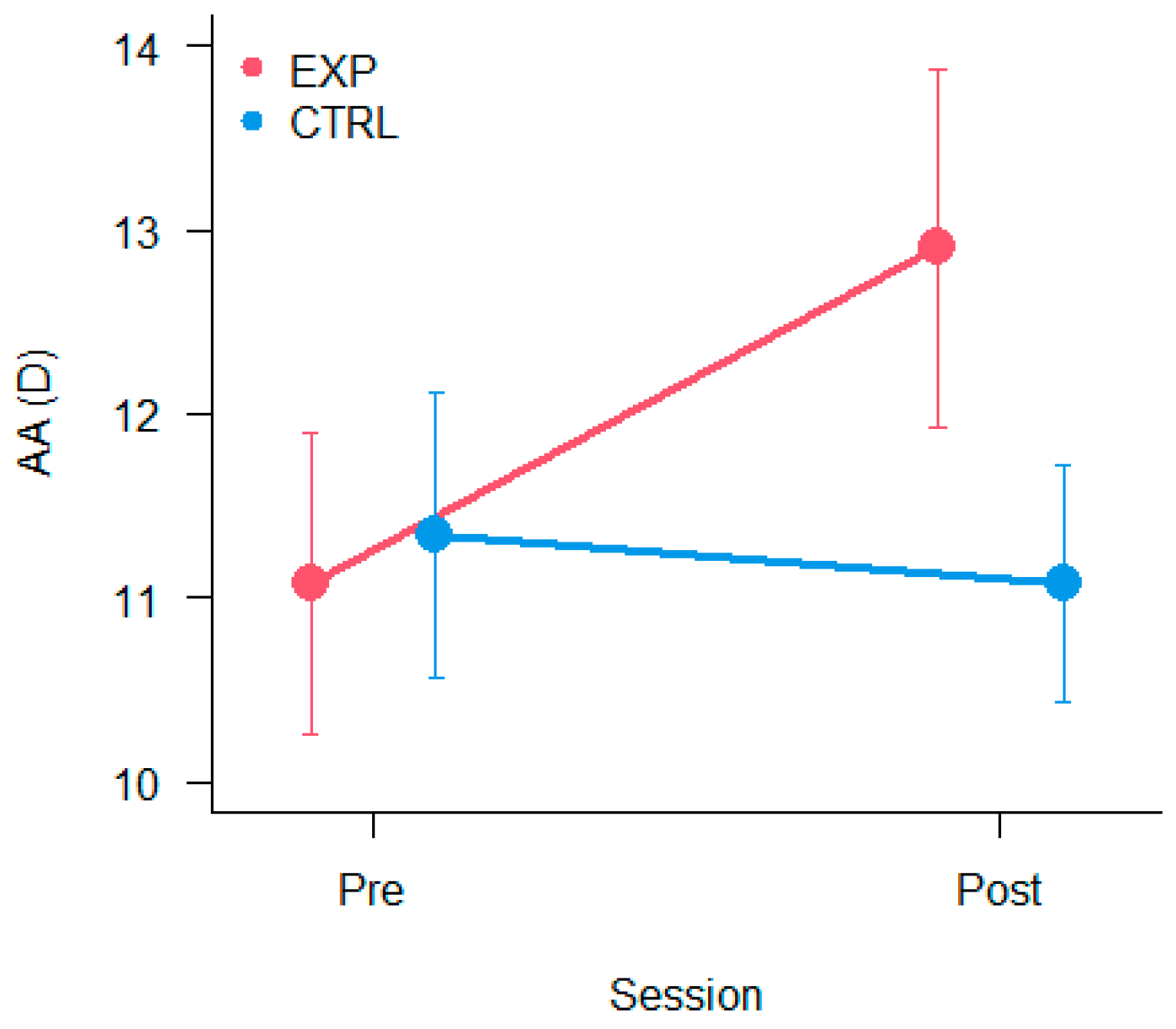 - Scheiman, M.; Cotter, S.; Kulp, M.T.; Mitchell, G.L.; Cooper, J.; Gallaway, M.; Hopkins, K.B.; Bartuccio, M.; Chung, I.; Group, the C.I.T.T.S. Treatment of Accommodative Dysfunction in Children: Results from a Randomized Clinical Trial. Optom. Vis. Sci. 2011, 88, 1343. [Google Scholar] [CrossRef]