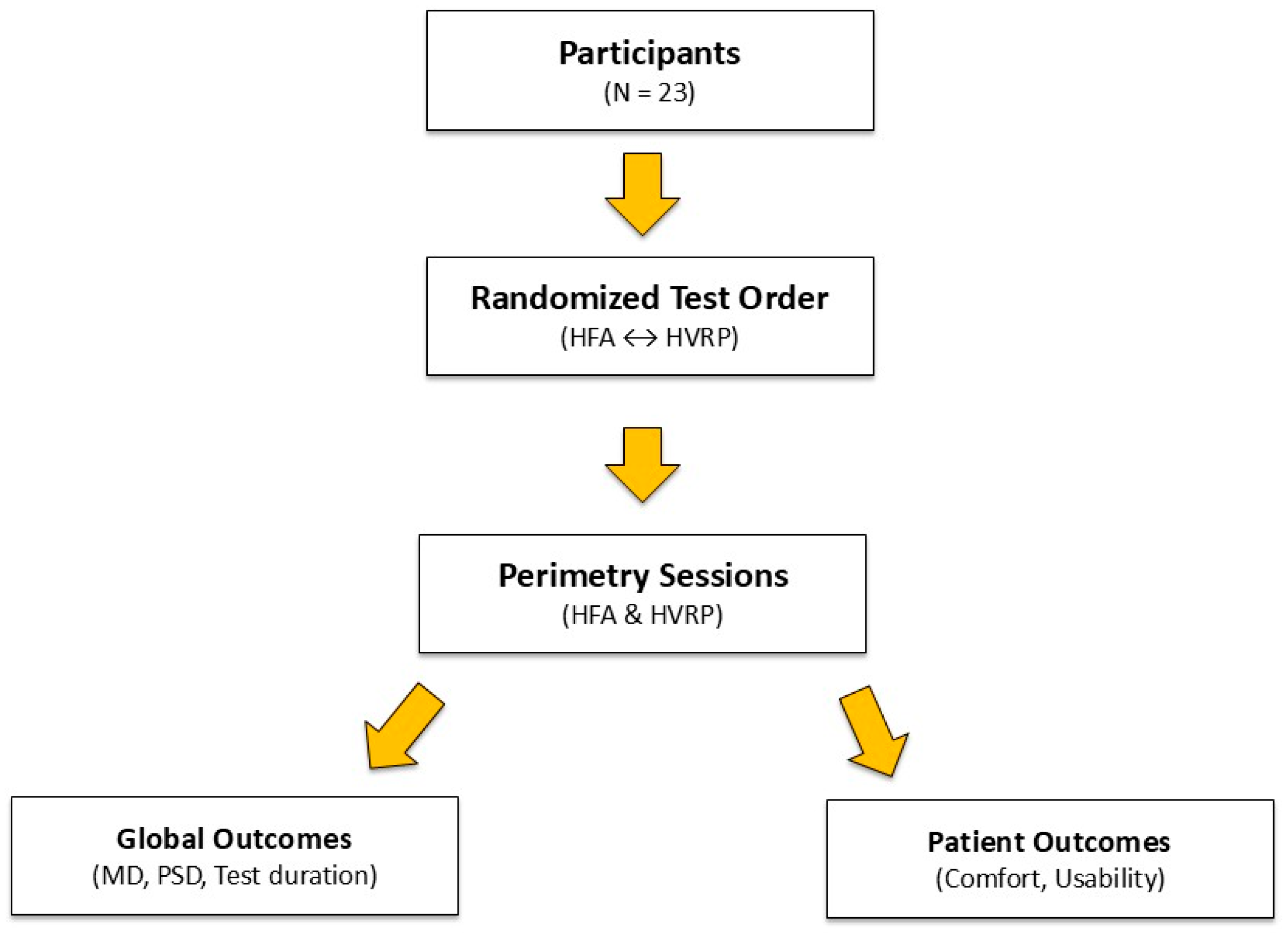 This study compared the performance of a Head-mounted Virtual Reality Perimeter (HVRP) with the Humphrey Field Analyzer (HFA), the standard in automated perimetry. All 23 participants successfully completed testing with both devices in a randomized order.