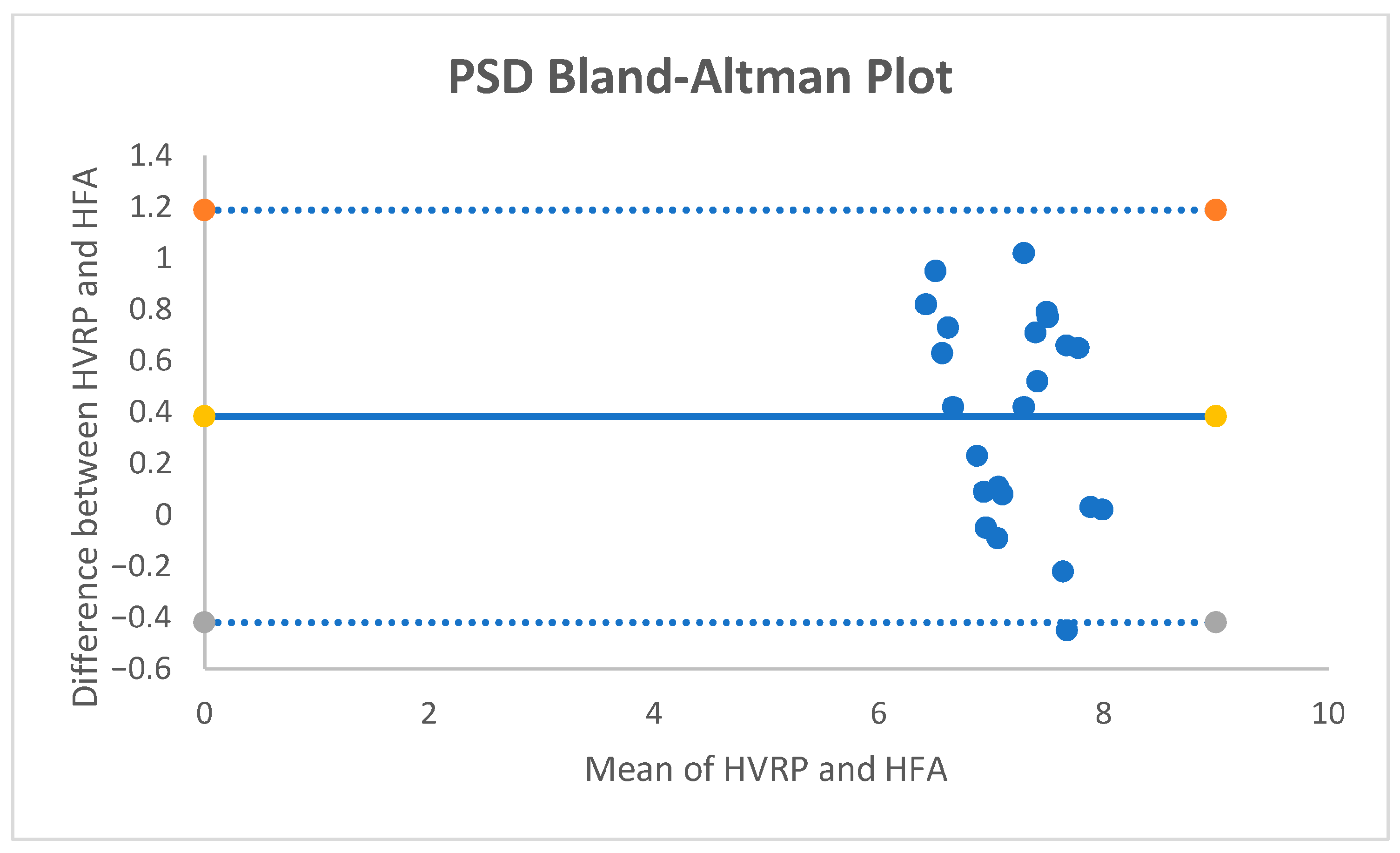 For PSD, the mean paired difference was +0.38 dB (95% CI +0.203 to +0.557;