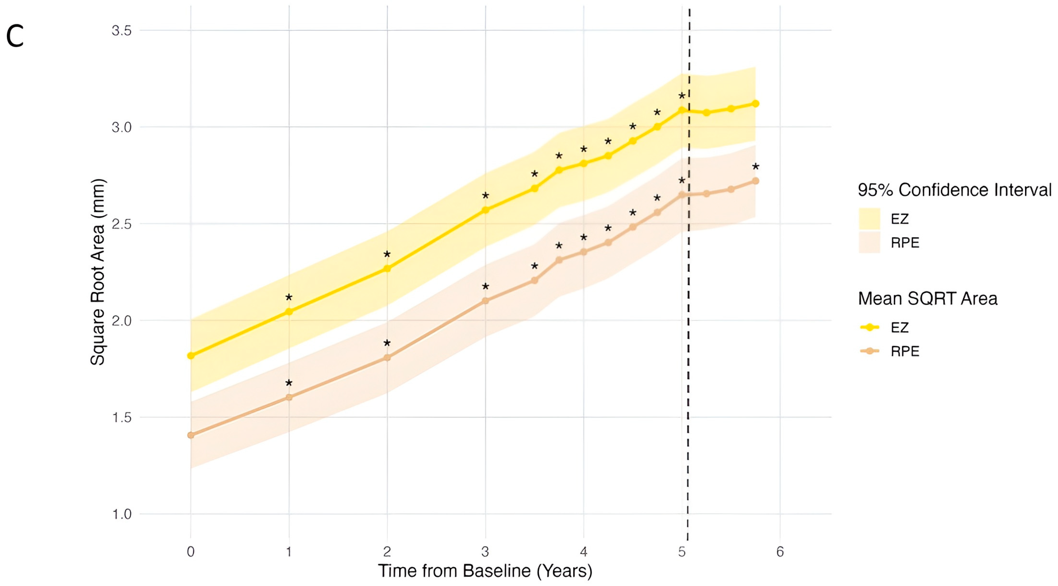 - Pfau, M.; Schmitz-Valckenberg, S.; Ribeiro, R.; Safaei, R.; McKeown, A.; Fleckenstein, M.; Holz, F.G. Association of complement C3 inhibitor pegcetacoplan with reduced photoreceptor degeneration beyond areas of geographic atrophy. Sci. Rep. 2022, 12, 17870. [Google Scholar] [CrossRef]