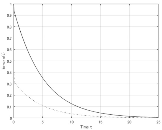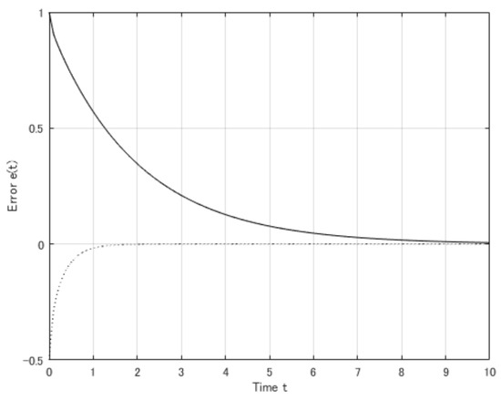 uniquely for . Given the initial conditions , the simulation result is shown in Figure 2. The solid line and dotted line indicate the error and , respectively. The designed observer obviously works well, as wee see the error and converge to zero.