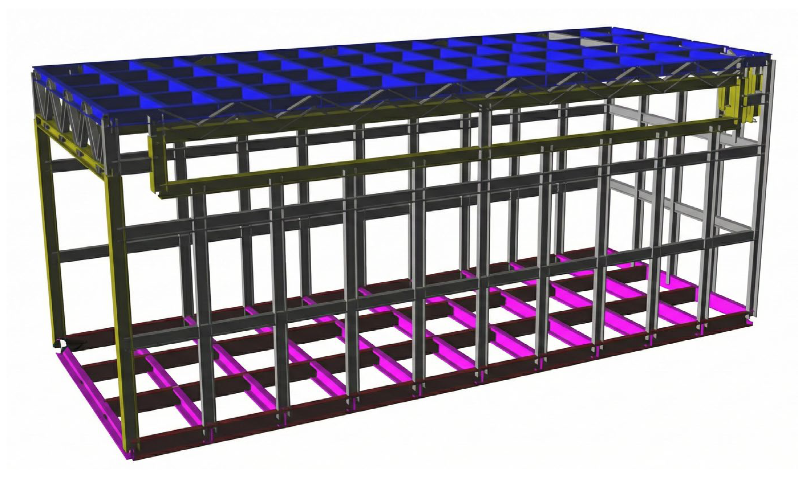 - Andrews, K. 5-Minute Crash Course on Metal Framing. Steel Network. 2022. Available online: https://steelnetwork.com/5-minute-crash-course-on-metal-framing/ (accessed on 14 May 2023).
