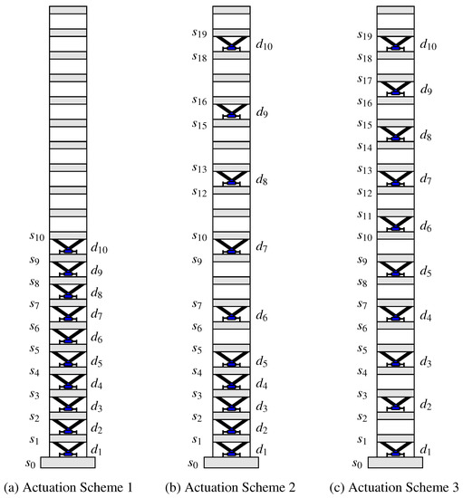 Finally, for the fully-distributed actuation scheme AS3 in Figure 2c, the list of actuation positions is and we obtain the control location matrix