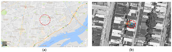 (a) Location of the site in Philadelphia, (b) location of the site in the North Kensington neighborhood.