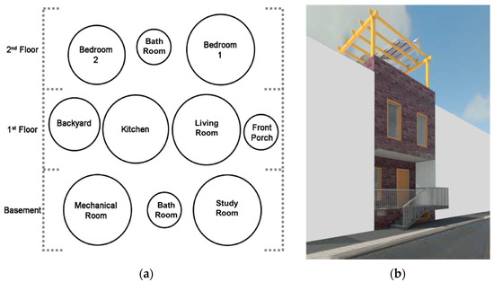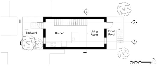 Considering the location, use, and site constraints, this rowhouse will have two floors above ground, an accessible rooftop, and a basement. The backyard exterior space is a common quality of Philadelphia’s rowhouses. The front porch will provide a cultural asset “offering an enjoyable as well as safety-enhancing vantage during nice weather” [15] and support neighborhood community social interaction. This rowhouse project will adopt the same envelope exterior materials, using the same commonly used brick on the façade to integrate as much as possible with the existing architecture.
