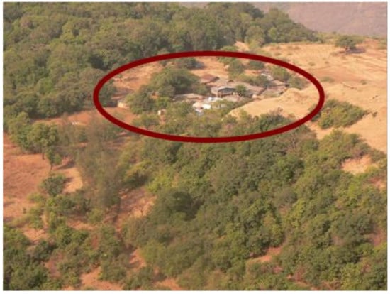 An aerial view of Rajmachi village, Maharashtra (circled in red).