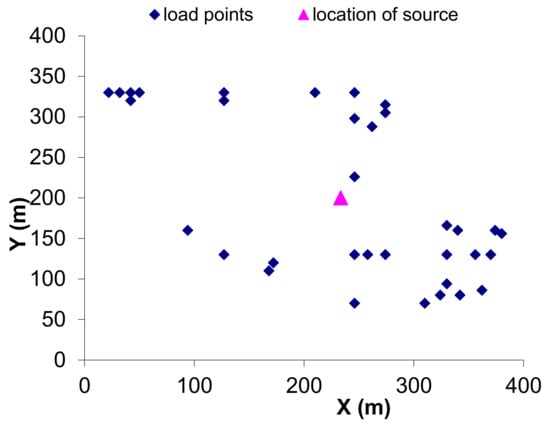 Algebraic sum of all moments around y-axis and x-axis are calculated and divided by the total load respectively to get the X and Y co-ordinates of the source as discussed in Section 3.2 using the following equation: