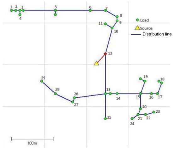 When the planning of a distribution system with DG is considered, the greatest attention should be paid to the siting and sizing of DG units because their installation in non-optimal locations can result both in an increase of power losses and reduction of reliability levels [,]. In rural distribution systems, the resistance in the distribution lines is often larger than, or at least similar to, the inductive impedance. The distribution line resistance causes a significant proportion of voltage drop along the distribution lines as well as of line losses []. The effect becomes prominent when a small amount of power needs to be taken over longer distances as in cases of villages far from the existing grid poles. The connection of DG can therefore have a significant influence on the local voltage level [].