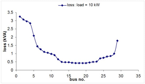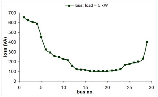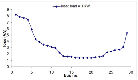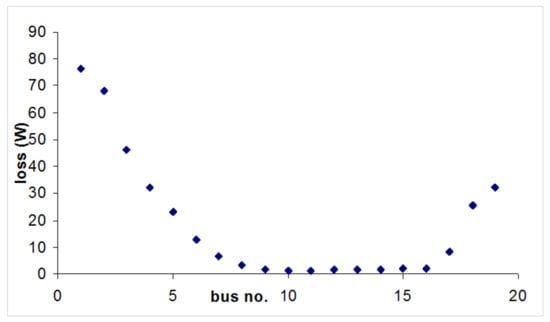 The losses amount to only 1% of total load when the total connected load considered is 1 kW. However, the percentage reduction in losses is high (around 80%) when placement of the PV source is varied from bus no. 1 to bus no. 19. In this case, economics will play a major role as the absolute value of the losses is very small.