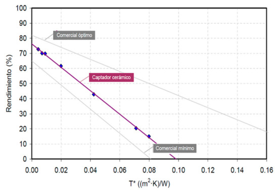 Characteristic curve that defines the performance of the ceramic solar collector.