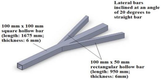 A square hollow bar of 100 mm × 80 mm, having a length of 1500 mm and a thickness of 6 mm, was chosen for the axle, which would be welded to the bottom of the tank.