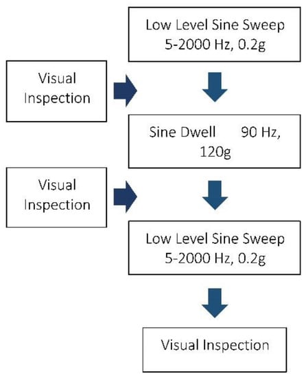 After removing the components from the build plate with the wire EDM, their support structures were removed, and all accessible surfaces were media blasted. Further, attachment points and mating surfaces were machined to achieve the tolerances required for their function. The components or component assembly (e.g., case study 3) were subjected to vibration testing consisting of a combination of the following: low level sine, sine dwell, and random vibration.