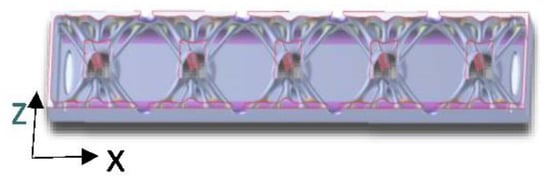 Because the edge inserts are press fit into an opening of a satellite sandwich panel (with overall panel dimensions of 250 × 70 mm), the external boundaries of the inserts must remain fixed, as illustrated in Figure 4.