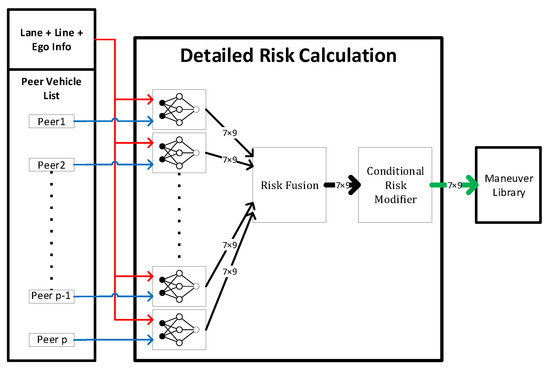 Role of Neural Networks In Figure 4, we can see the same network multiple times with partly different inputs. Each of them is responsible for estimating the manoeuvre risks considering only one peer object.