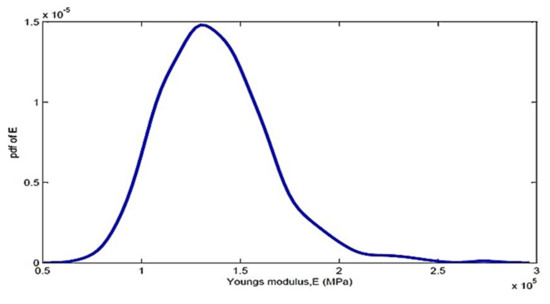The elastic modulus was lognormally distributed with standard deviation as 1.38 × 105 Pa. Figure 12 represents Young’s modulus due to the variation of the material properties.