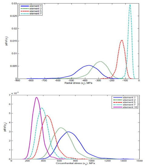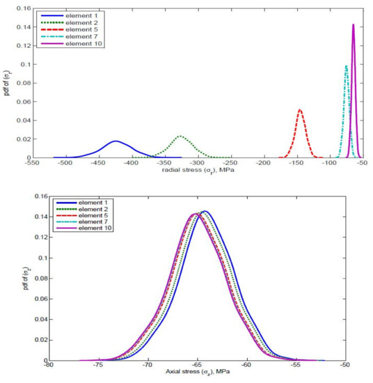 where is a random variable. So, Monte Carlo simulations were used to simulate the stresses for each element. Finally, the stress contours for each element in the radial direction were obtained.