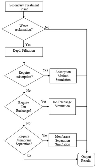 Advanced wastewater treatment is defined as an additional treatment needed to remove suspended, colloidal, and dissolved constituents remaining after conventional secondary treatment [12]. In the proposed learning aid tool, there are four selected AWWT unit processes to treat the secondary effluent, including: (i) Depth filtration, (ii) Membrane separation, (iii) Adsorption, and (iv) Ion Exchange.