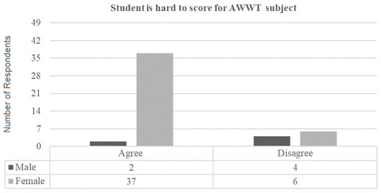 In total, of the 49 valid entries, 43 respondents were females and 6 respondents were males with age in a close range of 21 to 23 years old. The gender distribution reflects that only 12% of male students registered to this elective subject compared to 88% of female students.