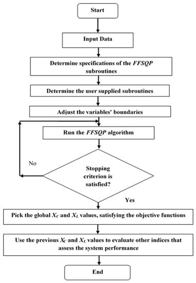 These nonlinear constraints limit PF within an acceptable specified range and avoid resonance. A general flow chart for the STPF search algorithm is demonstrated in Figure 4 using the feasible sequential quadratic programming (FFSQP) package. Optimal design of a filter often appears as a multi-factorial problem, because it generally contains different objectives with contradictory constraints pulling in different directions. FFSQP is ideal for this non-linear optimization design problem under conflicting design requirements [30].