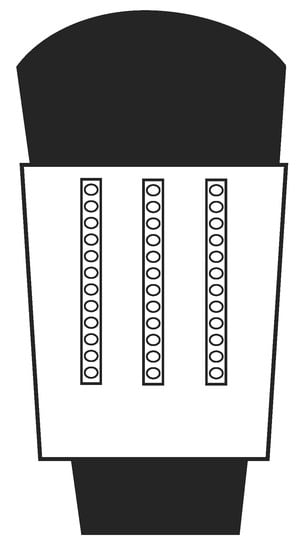 We used the LED costume fabricated in 2015 shown in Figure 2 during a large concert tour, and analyzed how LEDs break and how the wiring is prone to breakage. We used 20 of the 2015 LED costumes during the concert held seven times from April to July 2019, and collected LEDs that broke during the concerts. Concretely, when an LED is broken, the position of the broken LED is recorded, and it is collected and analyzed later. There were around 50,000 concert goers for each concert, and the concerts lasted approximately 2 h and 30 min. The performance using LED costumes was approximately 23 min. Data on the type of LED breakage and locations of broken LED units on the costumes were collected.