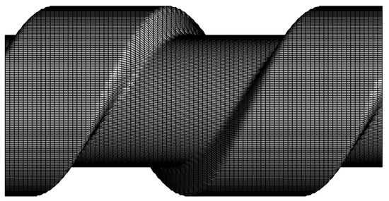 It was concluded that the current grid generation methods used for mapping of twin-screw machines could be used, but for the large helix angle vacuum pumps the quality of the grid may not be sufficient for accurate performance calculation. Since the grid is generated in the transverse plane the cells become highly nonorthogonal which leads to the numerical error when calculating fluxes through boundaries. According to the CFD study of twin-screw machines [17,18], the main fluid direction is perpendicular to the helix line especially in the clearance area. In addition, the numerical mesh in clearances is not aligned to the main direction of the leakage flow which causes numerical diffusion in clearances. As shown in Figure 2, Vierendeels [19] evaluated effects which the grid alignment of structured numerical meshes to the direction of the flow has on numerical diffusion of 1st and 2nd order numerical schemes to solve transport equation. When the grid is not aligned to the flow direction as shown in Figure 2a, both 1st order and 2nd order numerical schemes will result in numerical diffusion which reduces with the mesh refinement. However, if the numerical grid is aligned to the direction of the flow, such as in Figure 2b, than there will be no numerical diffusion and the prediction of velocities would be more accurate. This is very important for accurate prediction of leakage losses which are the main factor for efficiency of screw machines. Due to that, a different grid generation method using the normal rack procedure will be for the first time proposed in this paper. Both the main and the gate rotor coordinates will be first transformed to their normal plane, respectively, and the numerical grids will be generated in normal planes which are perpendicular to the helix line in the pitch circle of each desired normal cross section. This process is expected to make two major differences, (a) the numerical mesh will be nearly orthogonal and (b) the grid lines will be aligned to the flow through the clearances. This is expected to reduce numerical diffusion and increase accuracy and speed of calculation significantly.