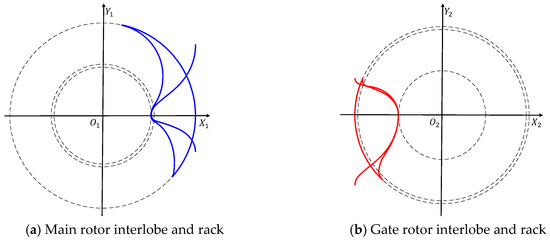With the input rotor profile, the subdomain of one interlobe can be obtained through the coordinate transformation. The interlobe of the main rotor and gate rotor is shown in the Figure 19. The numerical rack for the main and gate rotor can be calculated respectively. The inner boundary of the subdomain is the rotor profile and the outer boundary is the combination of the casing and rack.
