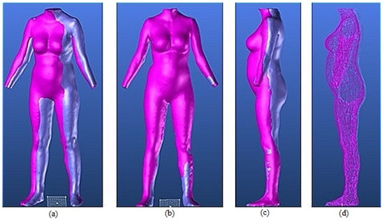 Moreover, parametric mannequins have been examined based on mathematical interpolation functions of input dimensions [12,13,14,15]. For instance, anatomical feature points of a human body were extracted and the skeleton model was made based on those feature points [12]. Then, a parametric wireframe with a controllable structure was created and the human model was estimated with a sweep surface. Their proposed method was found to make human deformation really convenient for obtaining the skeleton and parametric structure. Also, a framework for creating feature-based human bodies according to the specified measurement dimensions was presented [13]. Since the parametric design algorithm of his work was example-based, the exact dimensions given cannot be achieved using this proposed method and the input of the human structure was limited to the sizing dimensions.